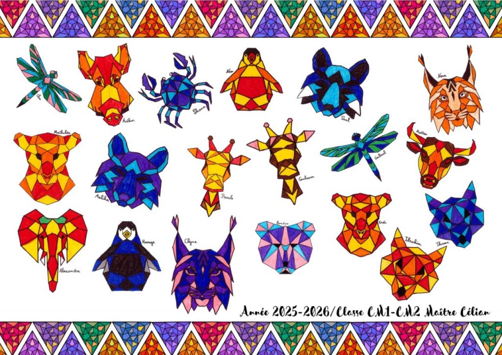 Bonjour nous avons colorié des animaux en symétrie et nous allons les donner au sou des écoles pour faire des objets avec notre dessin dessus. Ça ne sera pas comme les tee-shirts, il y aura tous les dessins de chaque élève. Comme ça on aura un peu d’argent pour le voyage.